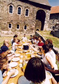 Offene Häuser führt bereits seit zwanzig Jahren internationale Workcamps an Baudenkmalen in gemeinnütziger Trägerschaft durch, die zumeist in ländlichen Regionen liegen. Eine bunt gemischte Gruppe von acht bis zwanzig jungen Leuten lebt jeweils für einige Wochen in einer Burg, einem Schloß oder einem Gutshaus und hilft bei der Instandsetzung dieser Gebäude oder der sie umgebenden Außenanlagen mit.